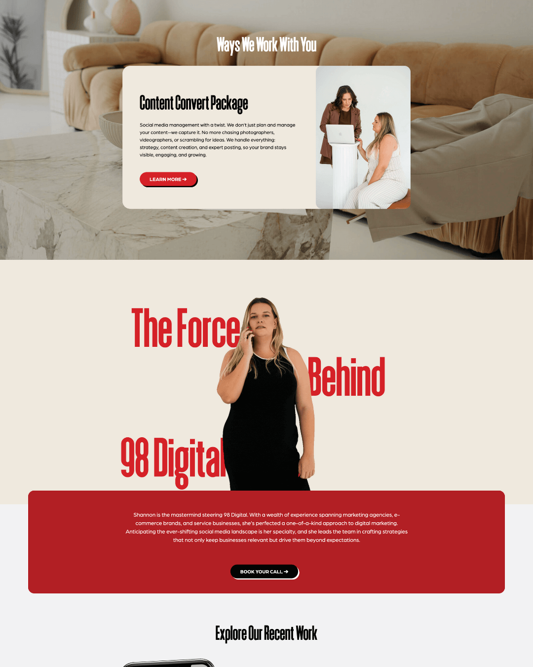 I blend bold creative direction with conversion-backed strategy to craft websites that feel unmistakably you, the kind that build trust on impact, attract the right people, and turn browsers into buyers. If you’re ready for a website that finally matches your energy, ambition, and personality… I'm your partner in making it a reality.